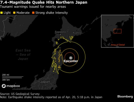 Prime Minister Sanae Takaichi said an emergency response center was being set up by the government, and called for those in areas affected by the earthquake to find safe locations. “Please go quickly to elevated places and evacuation areas,” she said in televised remarks. She said authorities were trying to establish the extent of damage from the quake and if there were any casualties.